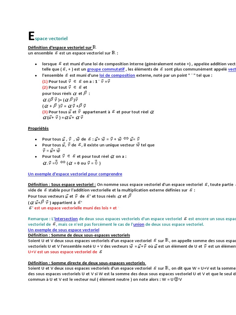 Rappel sur les espaces vectoriels un espace vectoriel e v est un ensemble avec 2 lois. Justifier que les ensembles suivants ne sont pas des espaces vectoriels. Un vecteur est un élément d un espace vectoriel. Les vecteurs de cet espace seront appelés vecteurs colonne il seront souvent désignés plus brièvement par.